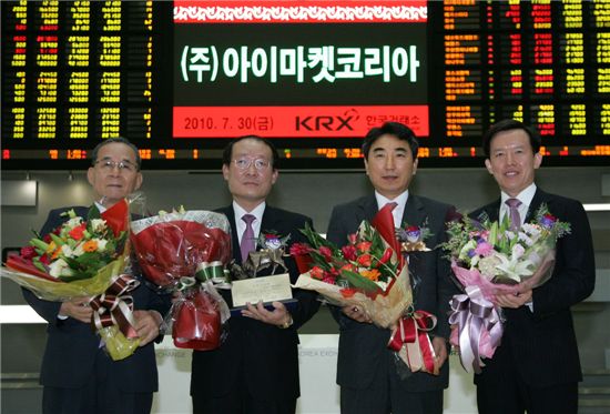 [아시아경제 김유리 기자]한국거래소 유가증권시장본부는 30일 서울사옥 종합홍보관에서 기업 소모성자재 및 사무용품 관련 기업간(B2B) 전자상거래업체 아이마켓코리아의 유가증권시장 신규상장기념식을 개최했다고 밝혔다.