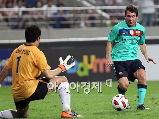 메시는 4일 오후 서울월드컵경기장에서 벌어진 FC바르셀로나 초청 K리그 올스타전 2010에서 전반 29분 교체 투입돼 1-2로 뒤지던 42분 왼발슛으로 동점골을 터뜨렸다.