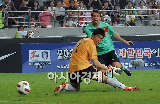그러나 두 번 실수는 없었다. 메시는 4분 뒤 미드필드에서 전진 패스를 받아 페널티 에어리어 오른쪽에서 정확한 대각선 슈팅으로 골망을 흔들었다. 그리고 전반 47분 오른 측면에서 김창수를 가볍게 제친 후 감각적인 왼발 슈팅으로 역전골을 넣었다.