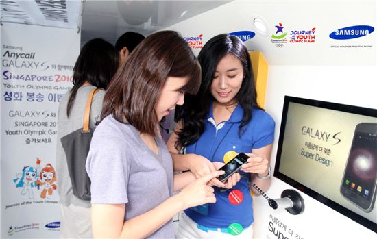 [아시아경제 조성훈 기자] 삼성전자는 5일 서울 올림픽공원에서 광화문까지 진행된 유스 올림픽(Youth Olympic) 성화봉송 행사에 맞춰 소비자들이 갤럭시 S를 직접 만져 보고 체험해볼 수 있는 '갤럭시S 체험 버스' 마케팅 행사를 진행했다고 밝혔다.