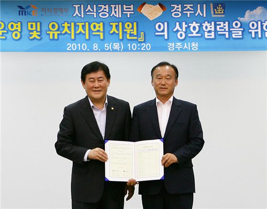 [아시아경제 황상욱 기자] 최경환 지식경제부 장관은 5일 경북 경주시청에서 최양식 경주시장과 '지경부-경주시간 방폐장 건설관련 협력 업무협약(MOU) 체결식'을 가졌다. 협약 체결 후 최경환 지경부 장관, 최양식 경주시장이 기념촬영을 하고 있다.