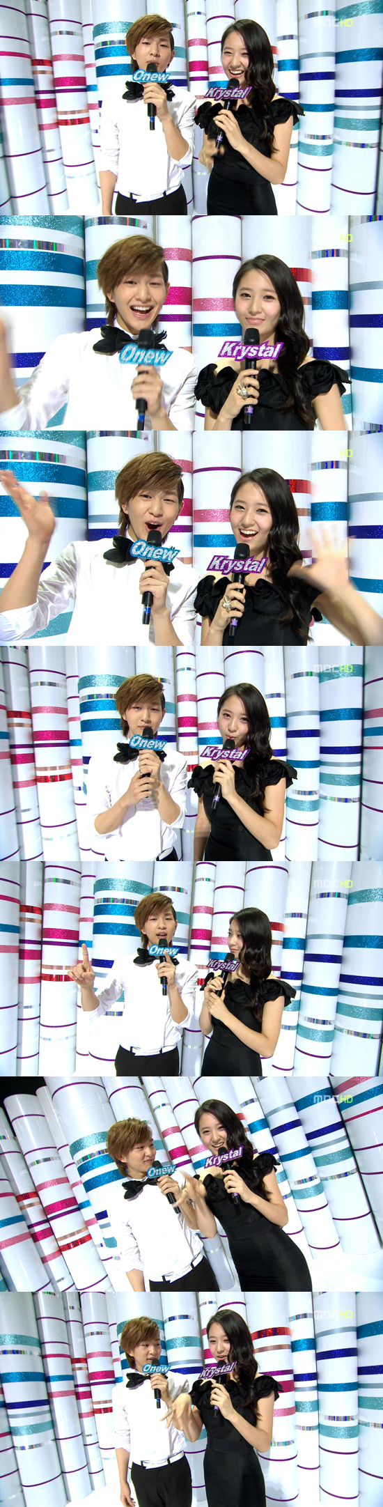 온유와 크리스탈은 7일 오후 4시 10분부터 생방송으로 진행된 MBC '쇼!음악중심'에 출연해 기존 MC 였던 티파니와 유리를 대신해 멋진 진행을 펼쳤다.