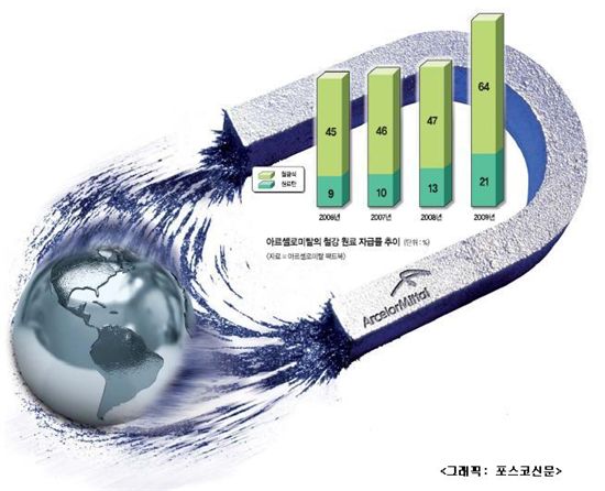 락시미 미탈 아르셀로미탈 회장 등 경영층은 올해 들어 철광석 자체 생산 1억t 목표를 5년 안에 반드시 달성하겠다는 강력한 의지를 수차례 표명해왔다. 원료탄 투자도 강화해 자급도를 25% 수준으로 끌어올릴 계획이다. 이를 위해 아르셀로미탈은 기존 자체 광산에서의 능력 증강을 통해 생산량을 확대하는 것과 더불어 신흥 자원국을 중심으로 신규 광산 개발에도 적극 투자를 추진한다는 전략이다.