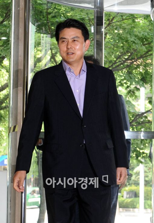 [아시아경제 이재문 기자]신임 국무총리 후보에 내정된 김태호 전 경남지사가 8일 오후 서울 광화문 한 오피스텔 사무실에 밝은 표정으로 들어서고 있다.