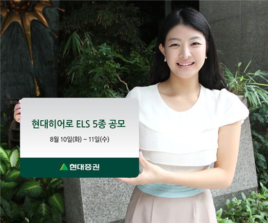 [아시아경제 이솔 기자]현대증권(대표이사 최경수)은 10일~11일 이틀간 원금보장형 ELS 1종, 원금비보장형 ELS 4종 등 총 5종의 ELS를 500억원 규모로 공모한다고 9일 밝혔다.