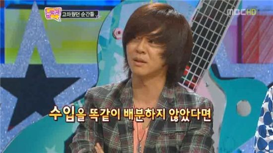 MC 유재석이 CF 출연 수입도 나누냐고 묻자 윤도현은 "그건 제가 갖는다"고 답했고 드러머 김진원은 "그래야 회사가 지탱이 된다"고 거들었다.