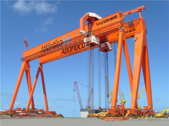 현대위아는 세계 최초로 최대 3000t까지 인양할 수 있는 골리앗크레인을 제작해 남미 최대 조선소인 브라질 에스탈레이로 아틀란티코 술(EAS·Estaleiro Atlantico Sul)사에 수출했다고 16일 밝혔다.