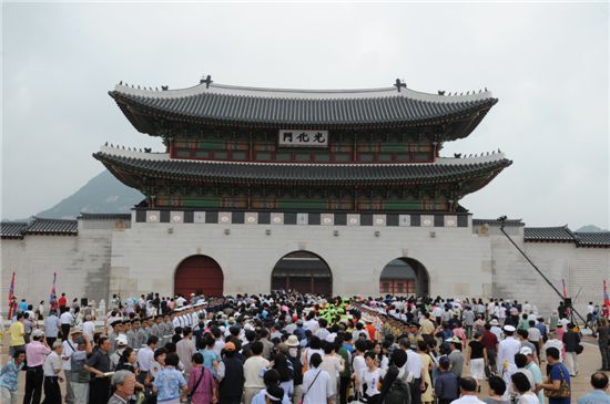 [아시아경제 강승훈 기자] 4년 여만의 복원기간을 거쳐 공개한 광화문을 찾은 관람객수가 15만명을 넘어섰다.