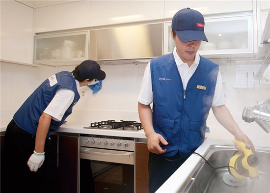 세대 청소 서비스는 입주한지 1년과 3년이 경과되는 단지에 제공되며, 주방·욕실 등의 살균청소와 아토피 환경 개선 및 살균, 살충 등의 효과가 있는 저온스팀 공간제균, 매트리스의 진드기 제거 등으로 구성된다.