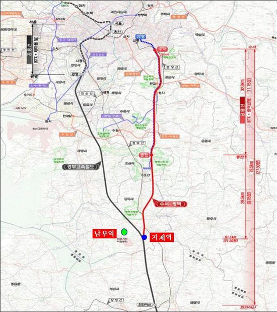 이는 국토해양부의 고덕신도시 내 경기 남부역사 설치비용(3074억원) 및 운영비 부담 요구에 대해 LH공사에서 부담이 불가하다는 의견에 따라 현실적으로 추진이 불가능해 우선 지제역사 설치를 추진키로 한 것이다.