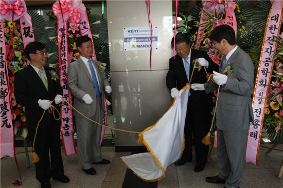 $pos="C";$title="";$txt="";$size="550,366,0";$no="2010081913415609841_1.jpg";@include $libDir . "/image_check.php";?>[아시아경제 최일권 기자] 변정수 만도 대표이사(사진 오른쪽에서 두 번째)와 최평락 전자부품연구원장(사진 왼쪽에서 두 번째)은 19일 성남소재 전자부품연구원에서 기술교류와 공동연구를 위한 컨버전스랩을 설립하고 기념 현판식을 가졌다.