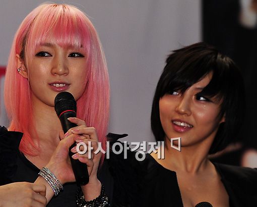 [아시아경제 한윤종 기자]19일 오후 서울 삼성동 엔씨소프트 R&D센터 오디토리움에서 열린 'JYP-엔씨소프트 제휴 협약식' 기자간담회에 참석한 가수 미스에이의 지아, 민이 인사말을 하고 있다.