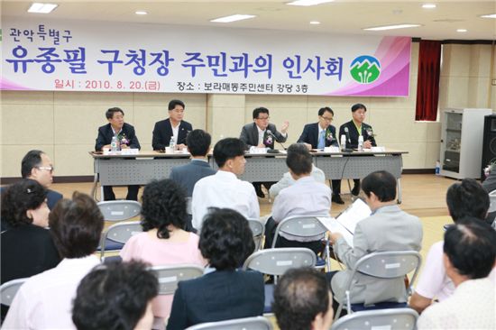 지난 20일 보라매동을 시작으로 나선 ‘2010 주민과의 인사회’는 유종필 구청장을 비롯한 구청 간부들이 각 동을 방문, 직능단체장, 유관기관장과 주민대표를 만나 각종 민원사항과 건의사항을 듣고 있다.