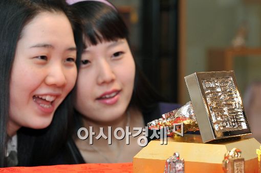 24일 관련업계에 따르면 롯데백화점은 지난해 초 초고가 한정 상품을 전시하고 판매하는 '수퍼 리미티드 에디션(Super Limited Edition)'에 민홍규 전 국새제작단장이 만들었다는 '대한민국 다이아몬드 봉황 국새'를 선보였다.