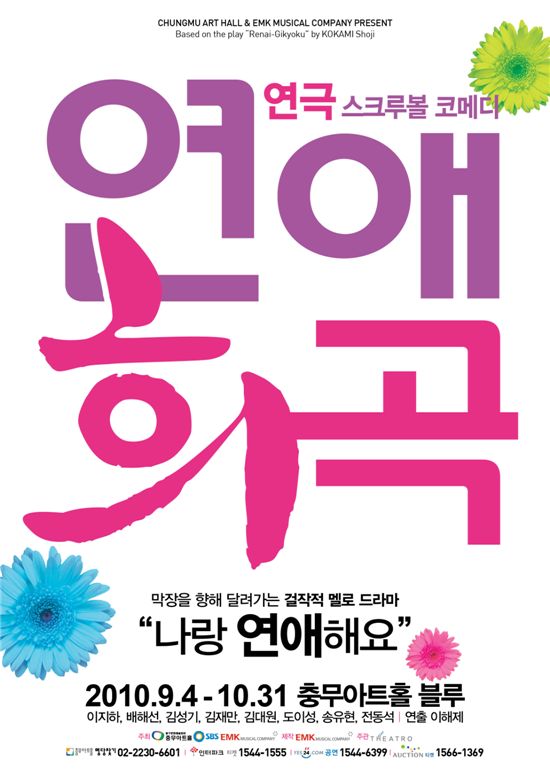 연극 ‘연애희곡’은 이해제 감독이 연출을 담당하고, ‘피맛골 연가’의 유희성 감독이 예술 부분을 맡는다. '몬테크리스토'의 김지원(떼아뜨로 대표)프로듀서와 ‘모차르트!’의 엄홍현(EMK뮤지컬컴퍼니 대표) 프로듀서가 각각 공연의 주관과 제작을 맡아서 또 한번의 대박 행진을 예고하고 있다.
