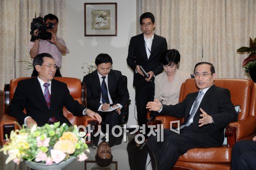 [아시아경제 이재문 기자]중국의 6자회담 수석대표인 우다웨이 한반도사무 특별대표가 26일 오후 도렴동 외교부청사에서 위성락 한반도평화교섭본부장과 면담을 하고 있다.