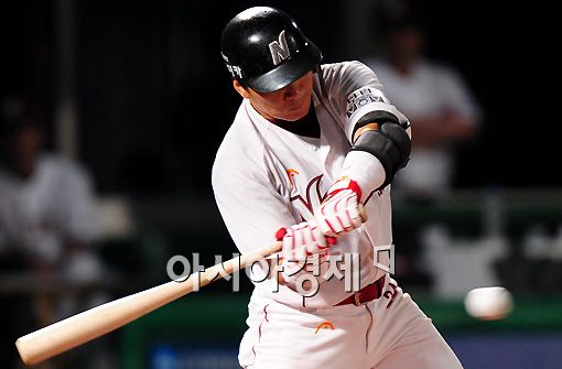 [아시아경제 한윤종 기자]26일 서울 목동야구장에서 열린 '2010 CJ마구마구 프로야구' 넥센 히어로즈-한화 이글스 경기. 7회말 넥센 강귀태가 솔로홈런을 날리고 있다.
