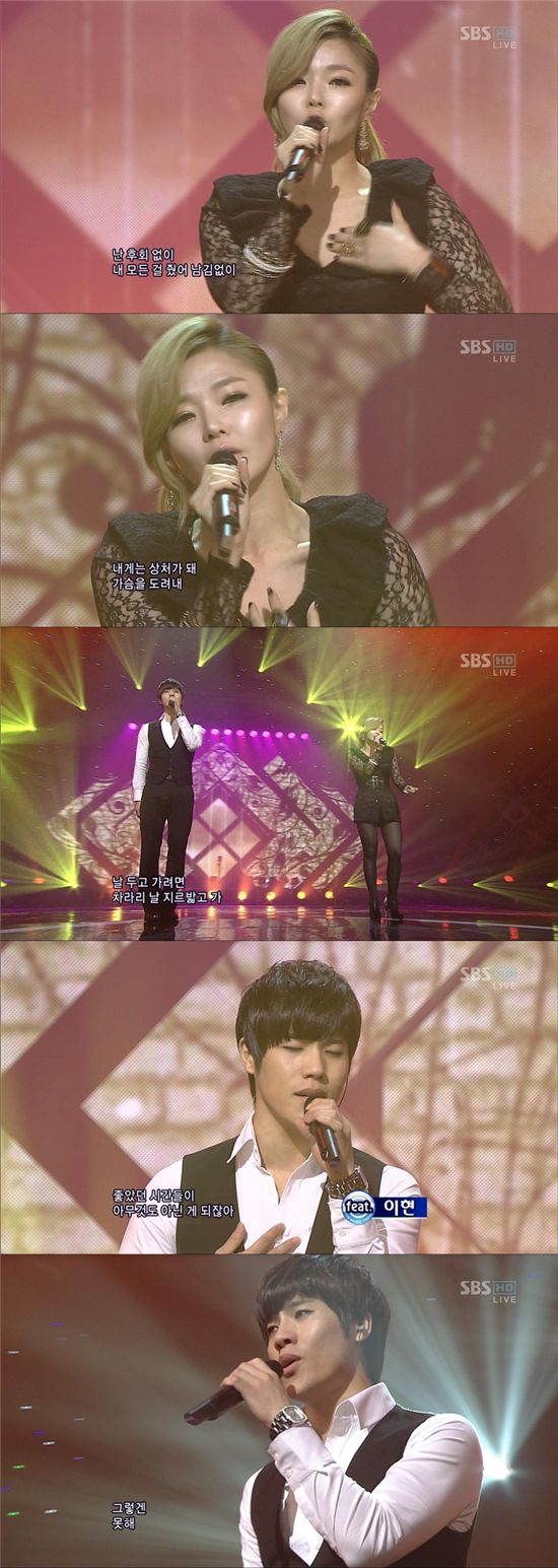 이날 타이틀 곡 '미안해 사랑해서' 무대에서 멜로디컬한 길미의 슬픈 랩핑과 이현의 슬픔을 머금은 목소리가 더해져 환상적인 분위기를 연출했다.