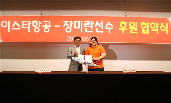 [아시아경제 김혜원 기자] 이스타항공이 장미란 선수와 후원 협약을 체결했다.