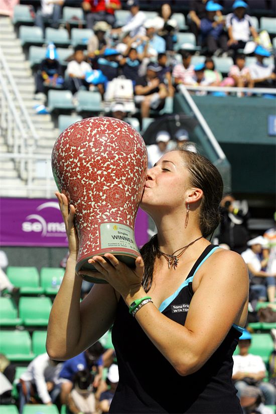 클레이바노바는 26일 서울 방이동 올림픽공원 테니스코트에서 열린 2010 여자프로테니스(WTA) 투어 한솔코리아오픈 자코팔로바와 단식 결승전에서 2-0(6-1 6-3)으로 이겨 우승을 차지했다.