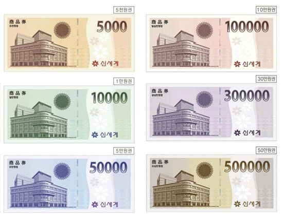 5000원, 1만원, 5만원, 10만원 30만원, 50만원 등 총 6종을 출시하며, 백화점 8개점과 이마트 129개점에서 구입할 수 있다.