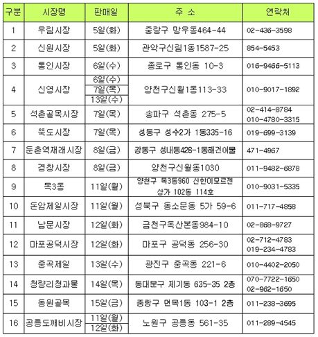 한편 이번에 1차로 지정된 각 구의 전통시장은 중랑구 망우동 소재 우림시장, 관악구 신림동 신원시장 등 총 16곳이다.