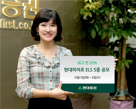 [아시아경제 이솔 기자]현대증권이 5~6일 원금보장형 ELS 1종, 원금비보장형 ELS 4종 등 총 5종의 상품을 300억원 규모로 공모한다고 5일 밝혔다.
