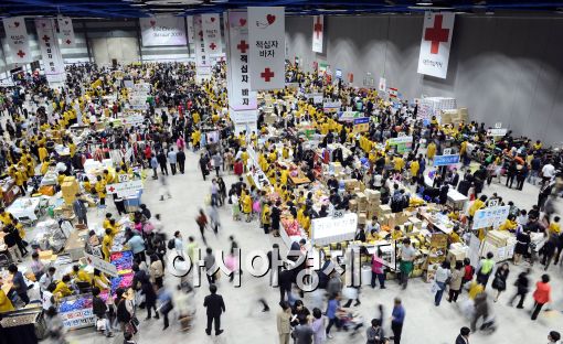 [아시아경제 이재문 기자]6일 서울 삼성동 코엑스에서 열린 ‘어려운 조손가정돕기 2010 적십자 바자회’에 많은 사람들이 몰려 성황을 이루고 있다.