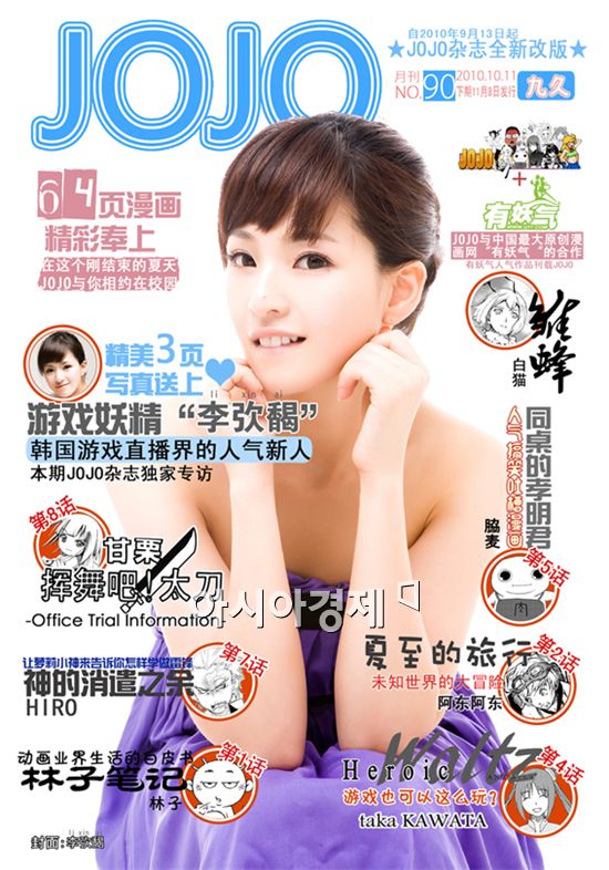 [스포츠투데이 강경록 기자]‘게임요정’ 이신애가 중국의 인기 만화사이트 ‘조조’(jojo2010comic.com)의 오프라인 매거진 10월호 표지를 장식하며 신(新)한류스타로 자리매김할 태세다.