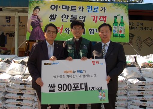 이번에 전달한 '사랑의 쌀'은 진로와 이마트가 지난 8월 공동으로 기획해 조성된 기금으로 구입한 것. 진로와 이마트는 지난 8월 10일부터 9월 12일까지 한 달간 이마트에서 판매된 참이슬 후레쉬 1병당 20원씩 적립하는 기금행사를 진행했다.