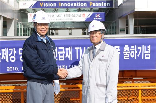 [아시아경제 조윤미 기자] 동국제강이 당진 공장에서 차세대 조선용 후판인 TMCP(Thermo mechanical controlled process·온라인 정밀 제어 열가공 처리) 후판을 생산해 3일 현대중공업에 처음으로 출하했다.