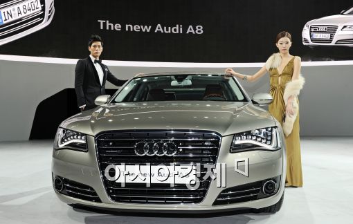[아시아경제 이재문 기자]아우디코리아 3일 올림픽공원 평화의 광장에 특별히 설치한 신차발표회장 'A8 파빌리온'에서 8년 만에 풀체인지된 '뉴 아우디 A8'을 선보이고 있다. '2010 G20 서울 정상회의' 의전차로 선정된 뉴 아우디 A8은 다이내믹한 성능, 혁신적인 기술, 최상의 안락함을 모두 담고 있는 아우디의 차세대 플래그십 모델이다.