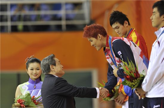 박태환은 광저우 아시안게임 수영 자유형 200m, 400m, 100m에서 모두 금메달을 목에 걸었다. 200m, 400m, 1,500m에서 각각 우승을 차지했던 2006 도하대회에 이어 2회 연속 3관왕에 올랐다.