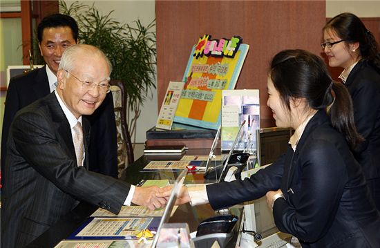 류 회장은 2일 오후 서울 송파구 신한은행 롯데월드지점을 깜짝 방문해 직원들과 대화의 시간을 가졌다. 영업점 직원들이 부담을 갖지 않도록 업무가 끝난 시간에 맞춰 점포를 방문, 직원들과 인사를 나누고 격려했다.