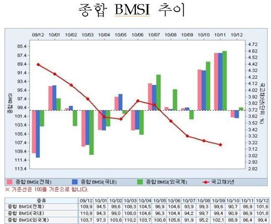 종합BMSI 101.6, 12월 채권시장 심리 상당폭 호전