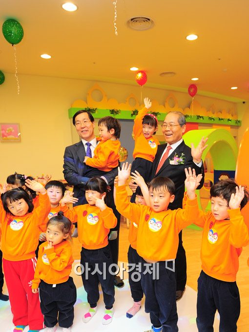 [아시아경제 윤동주 기자] 롯데백화점은 7일 오후 서울 예술의 전당 오페라 하우스에서 열린 '롯데백화점 KIDS LOUNGE' 오픈식에서 이철우 롯데백화점 대표(오른쪽)와 김장실 예술의 전당 사장이 아이들과 즐거운 시간을 보내고 있다.