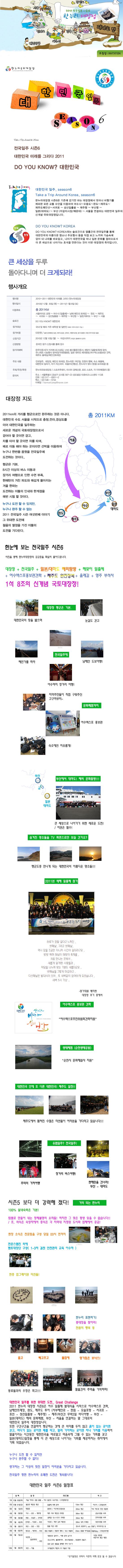 ‘DO YOU KNOW? 대한민국’이란 슬로건으로 오는 30일부터 2011년 1월8일까지 열리는 이번 행사는 국토대장정을 통해 대한민국의 아름다운 명소나 주요행사 등을 직접보고 느끼며 가슴속에 담아 내 나라를 바로 알고 나아가 대한민국을 떠나 일본 문화를 접하므로서 더 큰 세상으로 나아가는 초석을 만든다는 것이 이번 대장정의 취지입니다.. 전남 여수 향일암 일출제 참여 및 발대식을 시작으로 ,남해해안선, 완도, 제주항, 제주도해안선, 올레길, 성산일출봉, 부산항, 일본(대마도), 자갈치시장, 부산을 차례로 방문, 총2011㎞를 순례할 예정입니다.