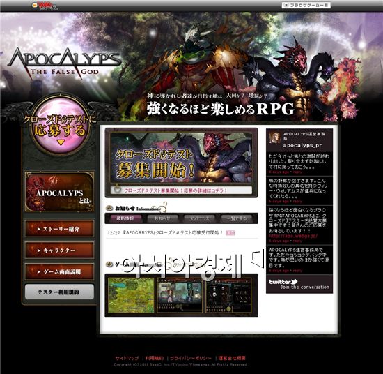 한편 일본 CBT에 대한 자세한 내용은 ‘아포칼립스’ 일본 홈페이지(http://apo.webga.jp/)에서 확인 가능하다.