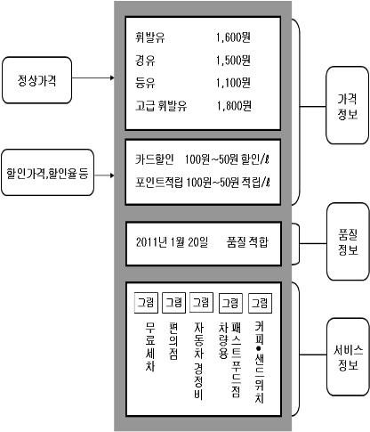 [아시아경제 이경호 기자]차량 운전자들이 주유소의 가격표시판을 보고 주유소 진입여부를 결정할 수 있도록 하기 위해 가격표시판의 위치가 더 잘보이는 곳에 정보는 더 담긴다.