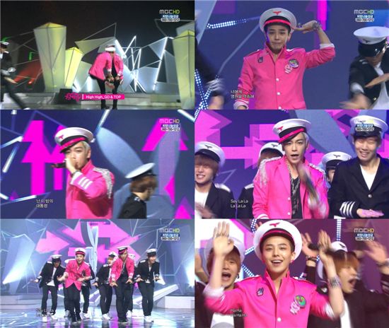 이날 '하이하이' 무대에서 GD&TOP은 폭발적인 래핑과 리듬의 중독성 있는 음악을 선보였다. 아울러 GD&TOP은 핑크빛 제복 패션과 눈길을 사로잡는 퍼포먼스로 팬들에게 강렬한 인상을 심어줬다.