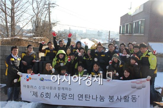 [스포츠투데이 강경록 기자]게임포탈 넷마블을 서비스하는 CJ인터넷㈜(대표이사 남궁 훈)의 2011년 신입사원들이 연탄 봉사 활동으로 새해를 시작하였다.