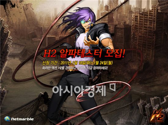 [스포츠투데이 강경록 기자]CJ인터넷(주)(대표이사 남궁 훈)의 게임포털 넷마블(www.netmarble.net)이 서비스 예정인 2D 횡스크롤 MORPG 'H2'가 18일부터 알파테스터를 모집한다.
