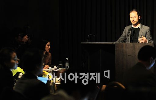 [아시아경제 윤동주 기자] 에반 윌리엄스 트위터 공동 창업자가 19일 오전 서울 중구 장충동 반야트리에서 한국어 서비스 오픈과 관련한 내용을 발표하고 있다.