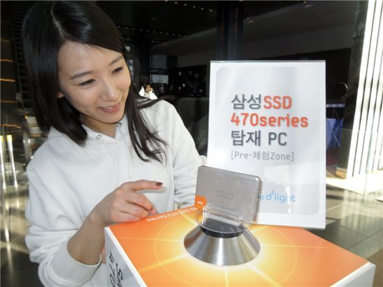 또 삼성전자는 소비자 체험 확대를 위해 SSD를 장착한 노트PC 대여 서비스를 실시한다. SSD를 노트PC에 장착할 경우 HDD의 3배 속도를 구현하며 전력을 적게 소모해 사용시간 30분을 연장시킨다. 노트PC 대여체험 서비스는 삼성 딜라이트 1층 카페테리아를 통해 신청할 수 있다.