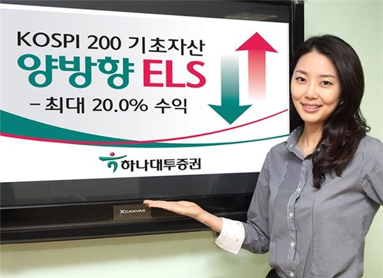'하나대투 ELS 1402회'는 18개월 만기 양방향 수익구조 ELS로 만기에 기초자산인 KOSPI 200지수가 가입 시 기준지수(오는 27일 종가) 대비 100% ~ 120% 구간에 있으면 지수 상승률의 100%의 수익이 확정된다. 최대 수익은 20%까지 가능하다. 지수가 하락하여 만기 지수가 기준지수 대비 80% ~ 100% 구간인 경우에도 지수 하락률 대비 70%의 수익이 가능하다. 최대 수익은 14.0%다.