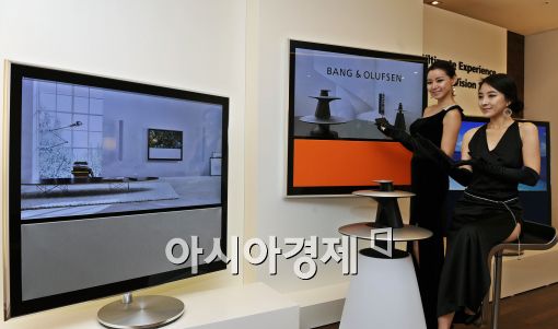 [아시아경제 이재문 기자]뱅앤올룹슨이 27일 오전 서울 압구정 본점에서 디자인과 화질, 음향의 마스터피스인 풀 HD LED TV 베오비전 10-46을 선보이고 있다. 소비자 가격은 1천230만원.