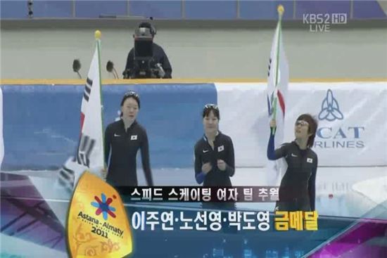 이주연(24), 노선영(22.이상 한국체대), 박도영(18.덕정고)으로 이뤄진 한국 대표팀은 6일 오후 카자흐스탄 아스타나 실내빙상 경기장에서 열린 아스타나-알마티 동계 아시안게임 스피드스케이팅 여자 팀추월 경기에서 중국과 일본, 카자흐스탄을 제치고 당당히 금메달을 거머쥐었다.