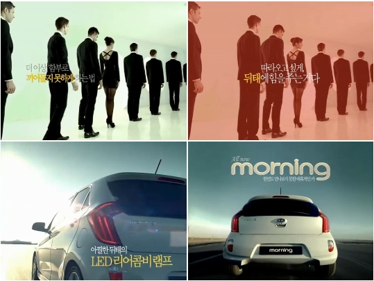 지난달 24일 기아자동차가 새롭게 출시한 ‘올 뉴 모닝’과 함께 나온 광고에서 이런 고정관념은 깨졌다. 모닝의 자랑거리 가운데 하나인 ‘LED 리어 콤비 램프’에 집중한 광고에서 ‘뒤태’를 강조하고 나선 것.