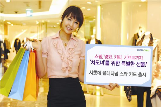 [아시아경제 이지은 기자]롯데카드는 쇼핑,영화, 커피 등 여성들의 지출이 많은 업종에서 포인트 적립, 할인, 특별 선물 등의 다양한 혜택을 제공하는 여성 특화카드 '샤롯데 플래티넘 스타 카드'를 28일 출시했다.