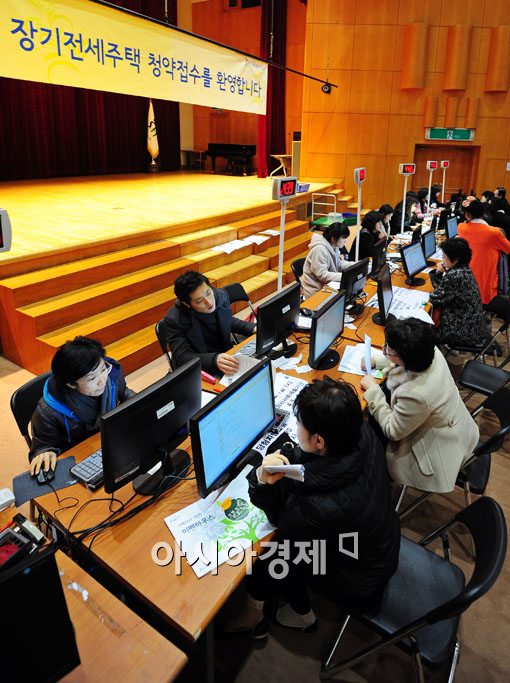 [아시아경제 윤동주 기자] 2011년도 첫 시프트 공급 접수 첫날인 14일 서울 강남구 일원동 SH공사 접수처에 신청자들이 몰려 접수를 하고 있다.